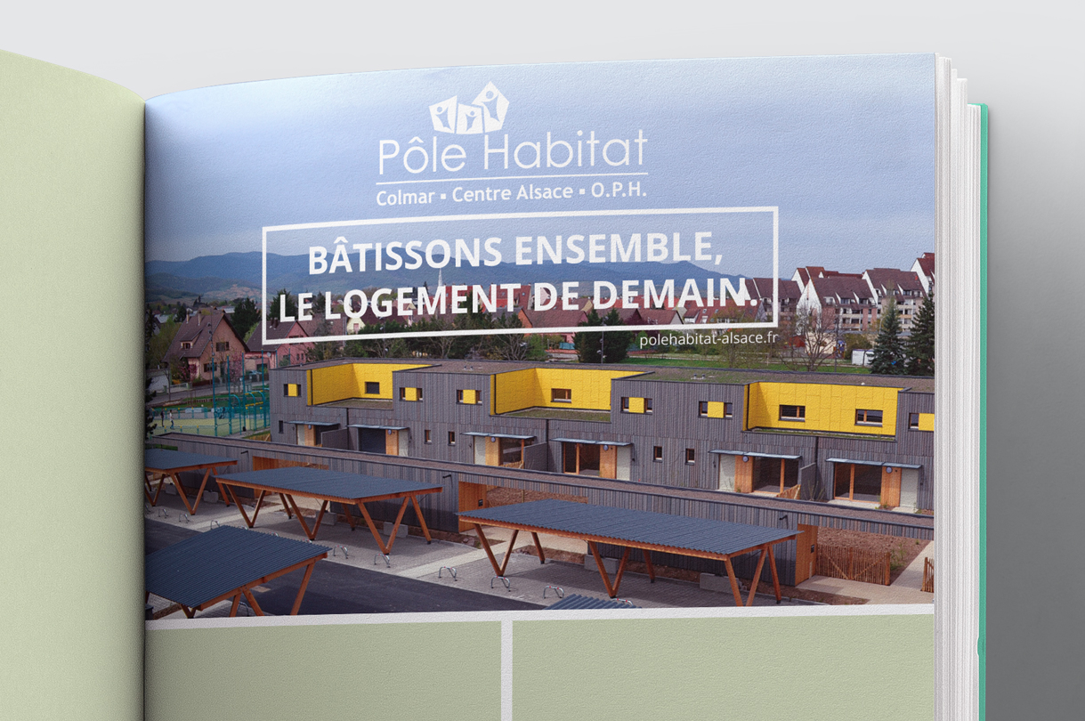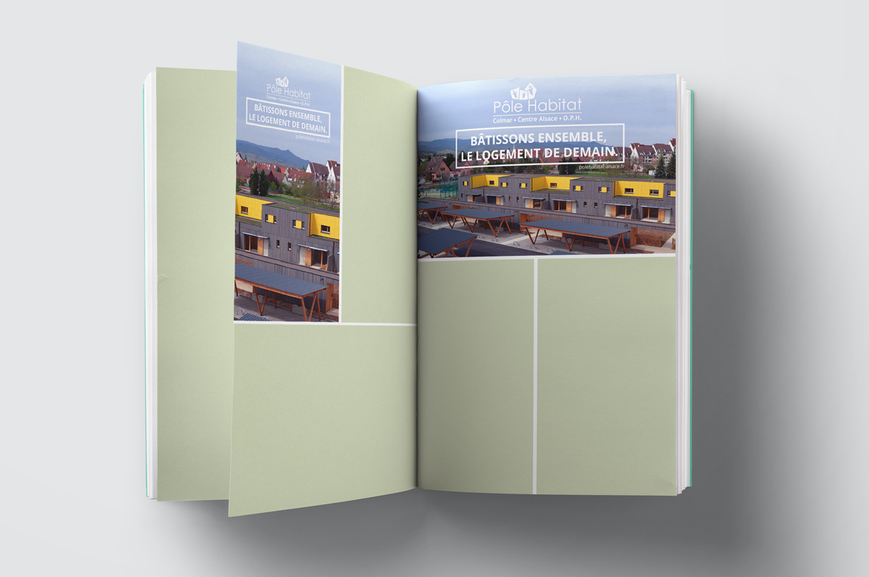 Réalisation d'une déclinaison d'insertion pour Pole Habitat dans l'annuaire de la ville de Colmar et l'agenda du 152e régiment d'infanterie.